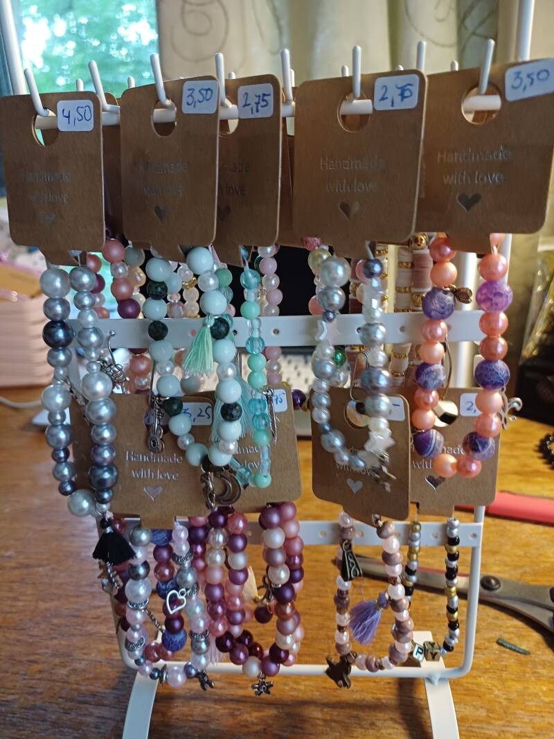 Overigens, ik heb gemerkt dat vooral de kaarten, armbandjes en andere sieraden (hangers en oorbellen) erg goed gaan in de Theetuin. Dat geeft een beetje richting in wat ik nog wil maken.